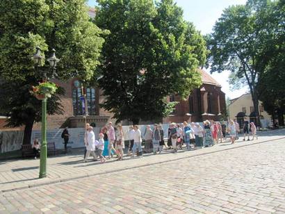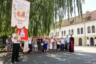 Dar prieš pusiaudienį Kauno arkikatedrą baziliką, kur vyko iškilmių Eucharistija, pasiekė piligrimų grupelės, kurios organizuotai, su vėliavomis atkeliavo iš savo parapijų ir jubiliejų proga drauge žengė pro Gailestingumo duris bei šventė Eucharistiją beveik pilnoje šventovėje.