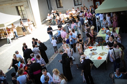 Vėliau šventė tęsėsi naujajame arkivyskupijos kiemelyje, greta Šv. Jono Krikštytojo centro, kur tą savaitę įvairiuose renginiuose kasdien netrūko žmogiškųjų susitikimų ir džiaugsmo. Keletą jo akimirkų dovanojo pasidalyta košė ir jubiliejinis gimtadienio tortas, atokvėpio valandėlė su kapela „Savi“ ir, žinoma, „Ilgiausių metų!“ arkivyskupijai!