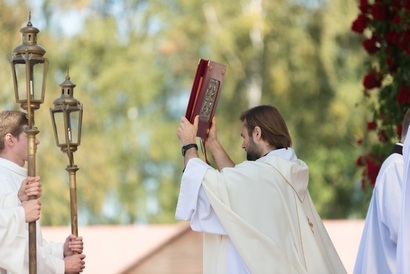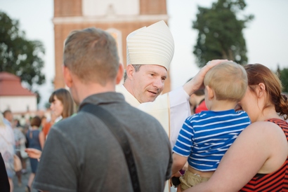 Užbaigus liturgiją, po ganytojiškojo palaiminimo, vyskupai ir kunigai, eidami per aikštę, laimino norinčių tėvelių vaikus – tai nauja, žmonių jau pamėgta atlaidų tradicija vakaro Mišiose.