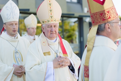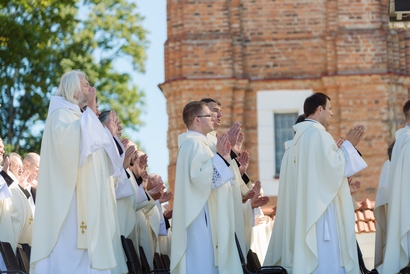 Eucharistiją koncelebravo Minsko ir Mogiliovo arkivyskupas Tadas Kondrusevičius, Rygos arkivyskupas Zbignevas Stankevičius, Liepojos vyskupas Viktoras Stulpinas, Elko vyskupas pagalbininkas Romualdas Kaminskis, Lomžos vyskupas pagalbininkas Tadeušas Bronakovskis, Kauno arkivyskupas emeritas Sigitas Tamkevičius, LVK Ryšių su Lenkijos Vyskupų Konferencija tarybos pirmininkas vyskupas Rimantas Norvila, šios Tarybos narys Kaišiadorių vyskupas Jonas Ivanauskas, Telšių vyskupas Jonas Boruta, Kauno arkivyskupijos augziliaras vyskupas Kęstutis Kėvalas, LVK delegatas užsienio lietuvių sielovadai prel. Edmundas Putrimas, Lenkijos marijonų provincijolas kun. Pavelas Naumovičius MIC bei visi dalyvavę kunigai. Asistą rengė Vilniaus seminaristai.