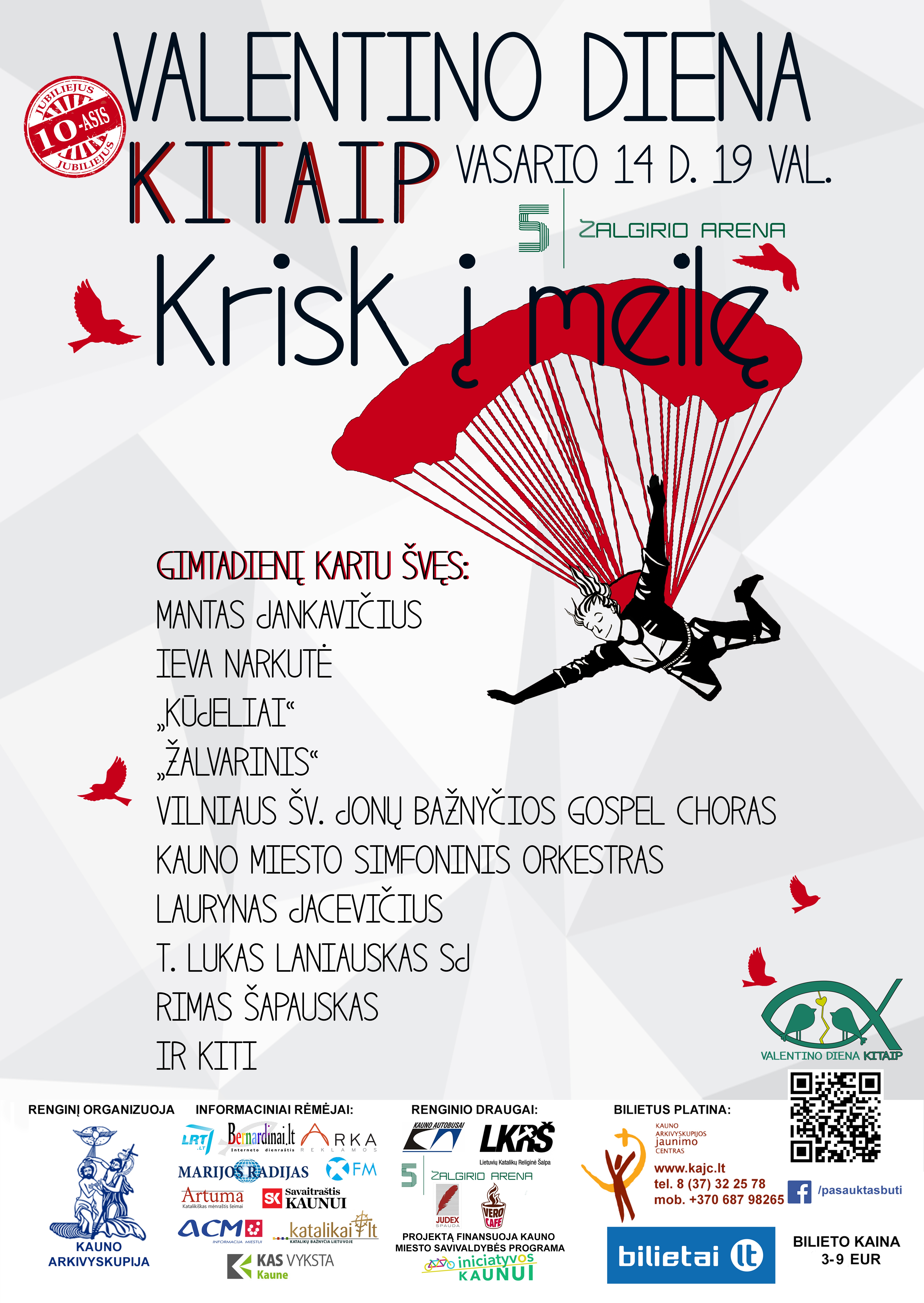 Kauno arkivyskupija jau 10-ąjį kartą visus kvies mylėti KITAIP. Klausite, kaip? Atsakysime – krintant į meilę! Jėzuitas t. Pedro Arrupe yra pasakęs: „Krisk į meilę, lik meilėje ir tai nulems viską.“ Anksčiau to neteko patirti? Dar nešventėte Valentino dienos KITAIP?