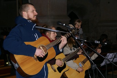 Šlovinimui tą vakarą vadovavo Jono Pauliaus II piligrimų centro jaunimas.