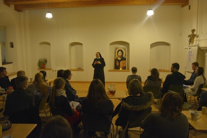 Šį pirmadienį, kovo 6 d., paskaitų cikle „Gilyn“, kurį rengia arkivyskupijos Jaunimo centras, lankėsi ses. dr. Gabrielė Vasiliauskaitė OSB. Susitikimo tema buvo sakramentai. Sesuo benediktinė kalbėjo apie tai, kaip atskirti ženklą nuo simbolio, o simbolį – nuo Sakramento.