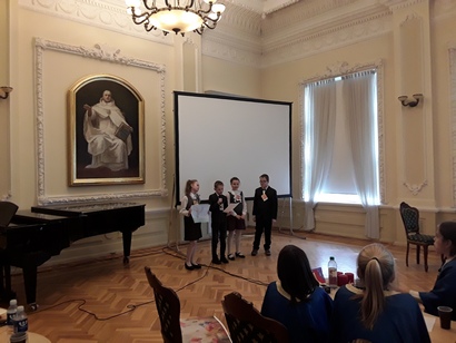 Renginio dalyvius pasveikino Kauno „Saulės“ gimnazijos moksleiviai Ignas Bingelis ir Kotryna Goštautaitė, fortepijonu ir violančele atlikę Liudviko van Bethoveno „Mėnesienos sonatą“ ir Gabrielio Faure „Sicilianą“.