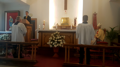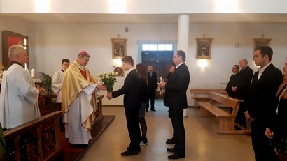 Baigiantis šv. Mišioms arkivyskupas pašventino gimnazijos vėliavą. Po iškilmingo palaiminimo padėkojo gimnazijos direktoriui Žilvinui Damijonaičiui, mokytojams, mokiniams ir gimnazijos chorui už bendrą maldą šv. Mišiose.