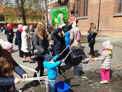 Kol tėvai suko galvas, kaip čia gudriau atsakyti į klausimus ir gauti keksiuką, mažieji galėjo prisijungti prie muilo burbulų pūtimo akcijos ir papuošti Kauno senamiestį dideliais, spalvotais burbulais. Kiti galėjo pačiupinėti besivystančių kūdikių muliažus ir sužinoti, kaip atrodo ir kiek sveria, pavyzdžiui, trijų ar septynių mėnesių dar motinos įsčiose gyvenantys kūdikėliai. Pasivaišinę, naujų dalykų sužinoję ir balioną dovanų gavę dalyviai buvo palydimi gyvos muzikos ir širdis šildančiomis savanorių šypsenomis. Šventė buvo labai spalvinga, kupina vaikų klegesio ir tikrai kviečianti susimąstyti apie gyvybės stebuklą. Nuostabi Dievo dovanota diena pavasario pradžiai!