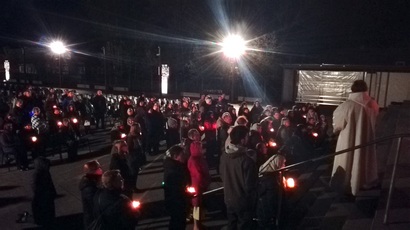 Prieš vidurnaktį pats Jėzus Eucharistijoje buvo išneštas į Šiluvos miestelio gatves kaip visą tamsą žmogaus gyvenime išsklaidančią Dievo šviesą. Eucharistinė procesija – joje Švč. Sakramentą nešė Kauno arkivyskupas L. Virbalas – tarsi pati visus savo glėbyje laikanti Dievo meilė apjuosė Šiluvą, o jos šešiose stotelėse trumpi ganytojų – vysk. Kęstučio Kėvalo, Šiluvos parapijos klebono kun. Erasto Murausko, kun. Dariaus Vasiliausko, kun. Artūro Kazlausko, kun. Pauliaus Vaineikio OFM – žodžiai kvietė įsiklausyti į šešių Fatimos apsireiškimų žinią ir apmąstyti, atrasti jų atbalsį šiose dienose – kad ir šiandien Dievas per dangiškąją Motiną drąsina žmogų nebijoti ir artintis prie Jo, daug melstis ir neišsigąsti kentėjimų dėl pasaulio sugrįžimo prie Kristaus. Procesijoje vidunaktį dalyvavo per 200 žmonių.