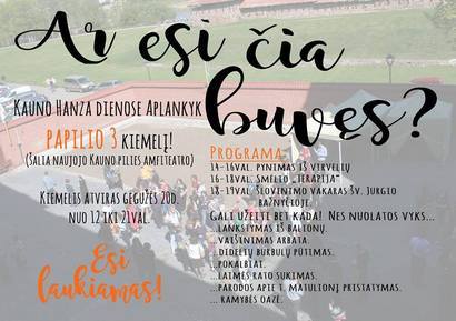 Kauno gatvėse ir aikštėse pasklisiantys kauniečiai bei miesto svečiai gegužės 20 d. kviečiami užsukti ir į kiemelį, esantį Papilio g. 3, kuris jau yra tapęs jaukių susitikimų vieta – greta Kauno pilies, Kunigų seminarijos, Šv. Jurgio Kankinio (pranciškonų) bažnyčios. Čia vyko Miesto misijų renginiai, koncertai, ir ši dar palyginti nauja bendrystės erdvė šalia Santakos šeštadienį vėl visus kviečia į bendrystę švenčiant miesto šventę drauge!