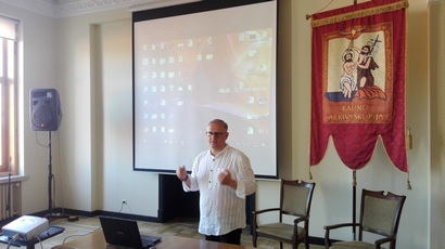 „Retorika ir skaitovo praktika“ – taip pavadintame baigiamajame III seminare gegužės 19 d. dalyvavo parapijų liturgijos skaitovai. Kartu su kun. Artūru Kazlausku arkivyskupijos kurijoje seminaro praktinį mokymą, kaip skaityti Šventąjį Raštą, vedė aktorius, solistas Jonas Lamauskas.