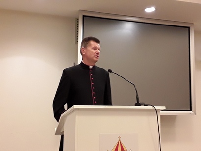Konferencijos šūkiu pasirinkta šv. popiežiaus Jono Pauliaus II ištarmė „Tikėjimas, kurį mes gavome kaip dovaną, yra šventas paveldas, kurį turime perduoti kitiems“ puikiai nusako jūsų darbo specifiką, darbo kryptį, jums keliamą pagrindinį uždavinį – perduoti jaunam žmogui tikėjimą į Dievą, Jo Sūnaus atneštąja Gerąja Naujiena – kad Dievas yra Meilė ir Gailestingumas... Linkiu būti tinkamais pavyzdžiais savo bendruomenėse, savo gyvenime. Būkite kantrūs visuose išmėginimuose, kuriuos sutinkate savo gyvenimo kelyje“, – linkėjo monsinjoras mokytojams.