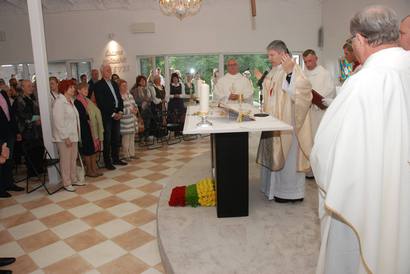Gausiai dalyvaujant parapijos bendruomenei, taip pat svečiams bei meldžiant Dievo palaimos parapijai, viso mikrorajono gyventojams ir naujos bažnyčios statytojams buvo aukojamos arkivyskupo L. Virbalo vadovaujamos šv. Mišios. Jas koncelebravo Kauno I dekanato dekanas mons. Vytautas Grigaravičius, parapijos klebonas kun. Andrius Alminas bei kiti miesto parapijų kunigai. Giedojo mišrus jaunimo choras „Exaudi“.