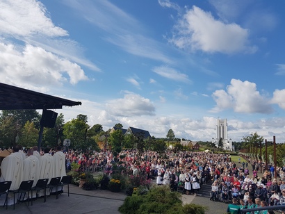 „Išmokite nusišypsoti ir padėkoti gerajam, prie Jūsų pasilenkiančiam žmogui“, – be kita, priminė katechezėje kun. R. Norkus, Telšių Vysk. Vincento Borisevičiaus kunigų seminarijos rektorius, kartu su seminaristais atvykęs į Šiluvos atlaidus.