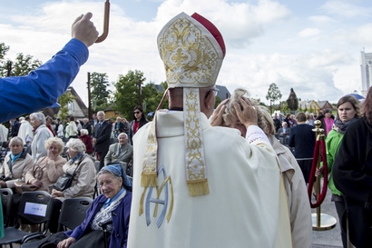 Vėliau vyskupai ir kunigai aikštėje teikė asmenišką ligonių palaiminimą.