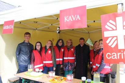 Kavos ir arbatos vėjo nugairintiems piligrimams parūpino Kauno II dekanato jungtinė komanda. Šią palapinę aplankė ir Kauno r. meras Valerijus Makūnas. Džiugiai kiekvieną pasitiko dekanato jaunimas, atlydėtas dekano mons. Augustino Paulausko.