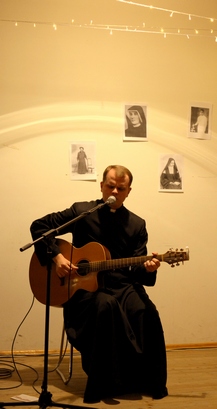 Toliau vakarą tęsė diakonas Vincentas Lizdenis, kuris pasakojo, kas yra šventumas, kokia tikroji šios šventės esmė, bei dalijosi savo muzikiniu talentu.