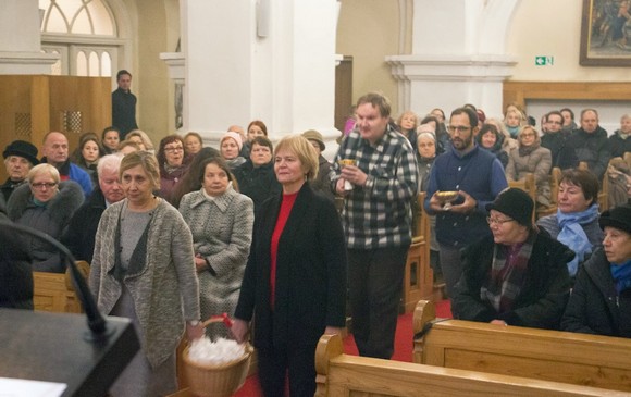 Po Visuotinės maldos atnašų procesijoje Benamystę išgyvenančiųjų dienos centro atstovai nešė prie altoriaus savo rankų darbo kryželius, dovanojamus Kauno kunigų seminarijos auklėtiniams. Carito atstovai nešė institucijoms ir organizacijoms, kurios rūpinasi vargstančiaisiais, dovanojamas žvakeles. Visų vardu ARKOS bendruomenės nariai atnešė duonos ir vyno atnašas.