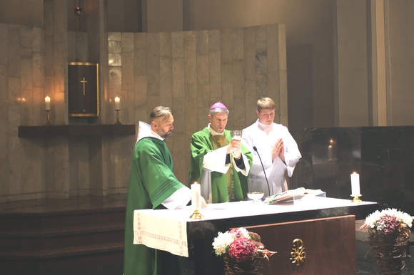 Arkivyskupas vadovavo liturgijai, o patarnavo diakonas Darius Chmieliauskas bei Kauno kunigų seminarijos auklėtiniai. Giedojo Jono Pauliaus II piligrimų centro jaunieji šlovintojai.
