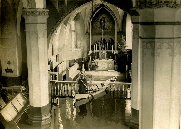 Vytauto Didžiojo bažnyčia per 1931 m. pavasario potvynį. Iš Kauno arkivyskupijos kurijos archyvo