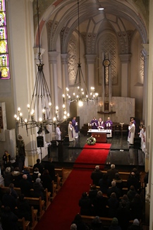 „Adventas – laukimo metas. Su kuo kitu, jei ne su Marija, galėtume būti šiuo laiku? Marijos giesmėje Magnificat girdime jos balsą, šlovinantį savo Viešpatį. Jis padarė didžių dalykų – Marijos sielai ir kūnui. <...> Panašiai šiandien noriu pripažinti tuos didžius dalykus, kuriuos padarė Viešpats – per žmones, per jus. Tų dalykų yra daug. Daug pasiekta žmonių, jie išgirdo vilties ir tikėjimo žodį, sulaukė pagalbos. Ačiū Jums. Tai motyvas šlovinti Dievą. Kiekvienas galime jungtis į Marijos himną ir už viską dėkoti“, – nuoširdžiai sakė arkivyskupas, sveikinęs savo pagalbininkus Švč. Trejybės (seminarijos) bažnyčioje ir vadovavęs Eucharistijai.