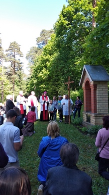 Nemažas būrys nuo mažo iki garbingo amžiaus maldininkų – tėvai, vaikai, jaunimas ir seneliai – kartu su arkivyskupu ir kunigais po Mišių išėjo į tris valandas trukusį Kalvarijos stočių kelią ir kaip tikri Jėzaus mokiniai, susirinkę draugėn (plg. Jn 20, 19), apmąstė Dievo meilės žmonėms slėpinį ir garbino Švč. Trejybę.