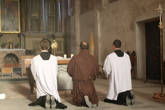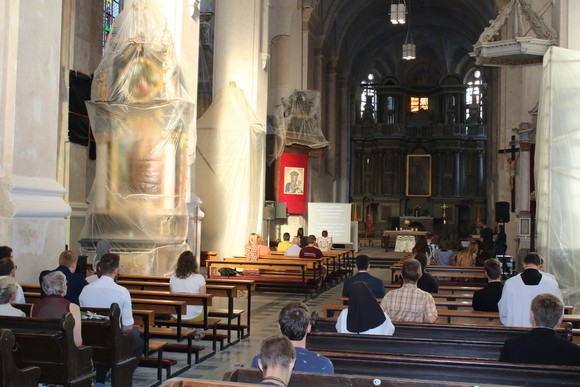 Kun. Juozapui Marijai Žukauskui OFM išstačius pagarbinimui Švenčiausiąjį Sakramentą Dievas savo artumu kalbino kiekvieną atėjusį, o jaunieji šlovintojai kvietė Šventąją Dvasią, kad Ji ateitų, atvertų visų širdis priimti Tėvo meilę ir gailestingumą.