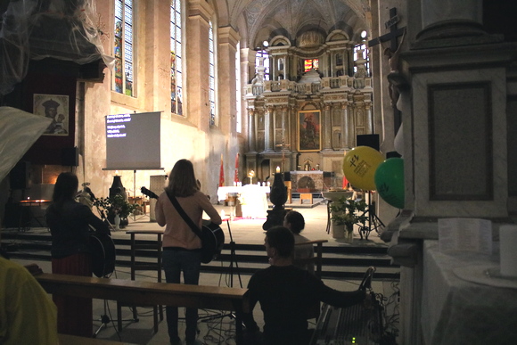 Dienos pabaigoje visi rinkosi šv. Jurgio Kankinio (pranciškonų) bažnyčioje. Joje šlovinimo grupė iš Vilniaus „Viešpaties balsas“, kun. Andrius Končius prie išstatyto Švč. Sakramento kvietė melstis už Kauno miestą ir maldoje pavesti visus mums svarbius dalykus, kad Dievas juos perkeistų.