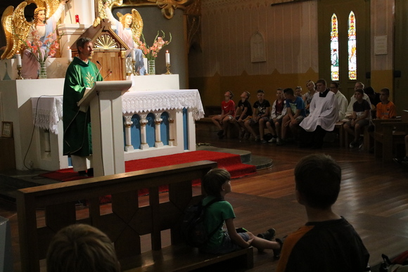 Šiluvos Švč. Mergelės Marijos Apsireiškimo koplyčioje jaunuoliai dalyvavo Sutaikinimo pamaldose. Sekmadienį kun. Artūras Kazlauskas, aukodamas šv. Mišias, stovyklos dalyviams išsamiai paaiškino jų liturgiją, kiekvieno veiksmo prasmę ir simboliką, čia ir dabar susiedamas visos stovyklos atskirų dienų programą.