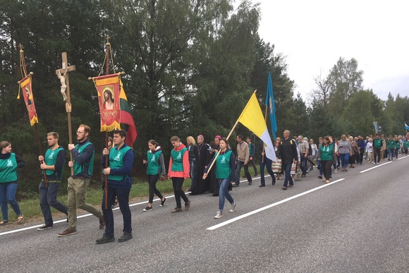 Šiemet piligrimų kelią į Marijos šventovę keliavome ypatingais metais, kai švenčiame Valstybės nepriklausomybės šimtmetį, o Lietuvoje dar laukiame popiežiaus Pranciškaus, kuris skuba pas mus su Evangelijos žinia. Tai minėjome tądien maldų intencijose, o greta Lietuvos vėliavos jaunųjų savanorių rankose į Šiluvą keliavo ir Vatikano vėliava kaip ženklas būsimo mūsų laukiančio džiaugsmo ir vienybės su Šventuoju Tėvu, kurio atvykimui rengiamės ir jo labai laukiame.