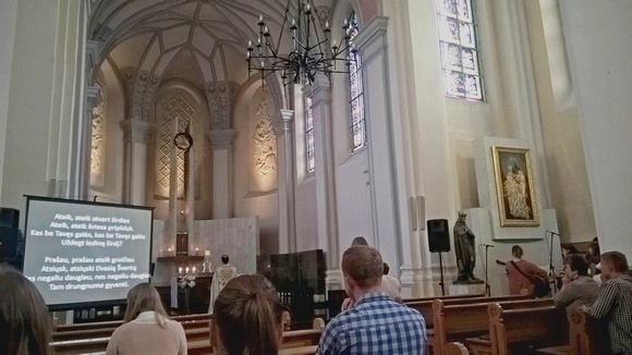 Rugpjūčio 30 d. vakarą pilname kauniečių, miesto svečių Kauno senamiestyje duris plačiai atvėrusi buvo ir Švč. Trejybės (seminarijos) bažnyčia. Čia vyko Šlovinimo vakaras, kurį organizavo arkivyskupijos kurija drauge su seminarija. Tą vakarą čia atėjusieji po dienos darbų drauge su Jono Pauliaus II piligrimų centro jaunaisiais šlovintojais galėjo šlovinti Viešpatį giesme, melstis už save, savo miestą ir visą Lietuvą, laukiančią atvykstančio popiežiaus Pranciškaus, už patį Šventąjį Tėvą, kad Dievas laimintų, teiktų jėgų jo tarnystei Bažnyčioje ir, žinoma, jo kelionei Baltijos šalyse. Juk visai netrukus su juo galėsime pasisveikinti Kauno senamiestyje!