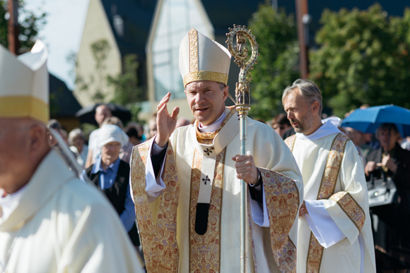 Liturgijos pabaigoje prieš ganytojiškąjį palaiminimą arkivyskupas L. Virbalas pakvietė tarti žodį svečią kunigą iš Fatimos.