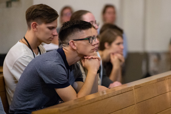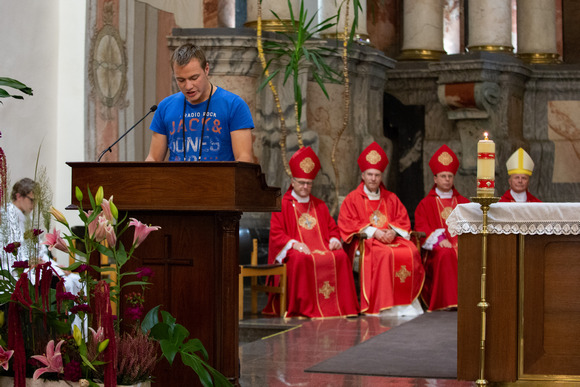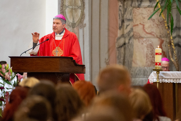 Homiliją pasakęs arkivyskupas L. Virbalas pasidalijo su jaunais žmonėmis Evangelijos žinia, jog Jėzus mylinčiu, gailestingu žvilgsniu žvelgia į visus, į kiekvieną žmogų, kurie neretai yra silpni ir nusidedantys. Viešpats matė muitininką Levį, rinkusį mokesčius. Tačiau pažvelgė į jį ir pašaukė būti savo mokiniu – apaštalu Matu. Viešpats myli ir mus, pasirenka mus, nors esame maži ir silpni. Jėzus sakė – Jis atėjo dėl nusidėjėlių.