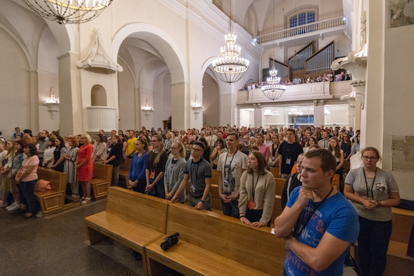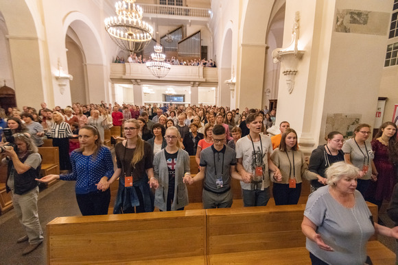 „Šaunu, kad Lietuvoje yra tokių žmonių. Džiaugiuosi ir dėkoju jums“, – sakė Kauno arkivyskupas Lionginas Virbalas vakare, savanorius pasveikindamas Jėzuitų bažnyčioje. Šį vakarą ji buvo pilnutėlė jaunų žmonių, jų karštų širdžių ir rankų, kurios nori daryti gera, yra pasirengusios savo jėgas, laiką skirti neatlygintinai tarnystei – šįkart konkrečiam pasitarnavimui žmonėms per popiežiaus Pranciškaus apsilankymą Kaune.