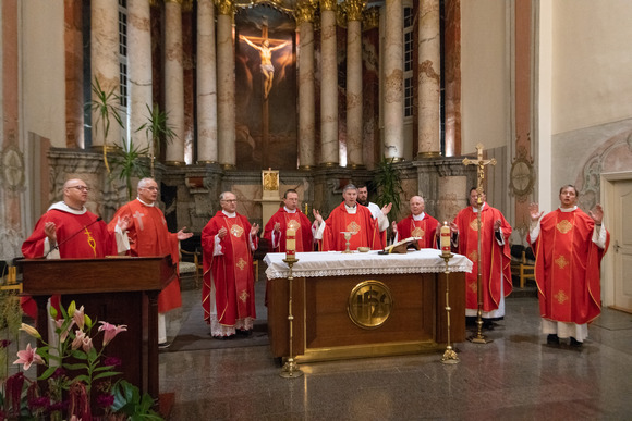 Maldavimą prie vėliau išstatyto Švenčiausiojo Sakramento sakęs vysk. Jonas Ivanauskas pavedė Viešpaties globai, šventųjų ir palaimintųjų užtarimui Lietuvą, Bažnyčią Lietuvoje ir ypač jaunus žmones, lenkiant galvas prieš tuos šventus vyrus ir moteris, kurie dėl Tėvynės, artimo meilės atidavė savo gyvybę. Jėzuitų bažnyčioje iki pat rugsėjo 23 d. paryčių vyks Švenčiausiojo Sakramento adoracija, šlovins įvairios grupės. Esate laukiami!