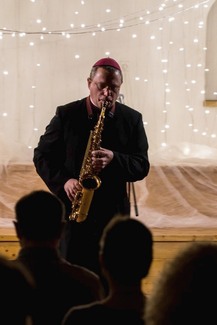 Vakarą pradėjo generalvikaras vyskupas Algirdas Jurevičius, kuris visiems papasakojo apie šventumą, pal. Teofilių ir taip pat dalijosi savo talentais – pagrojo saksofonu bei padainavo.
