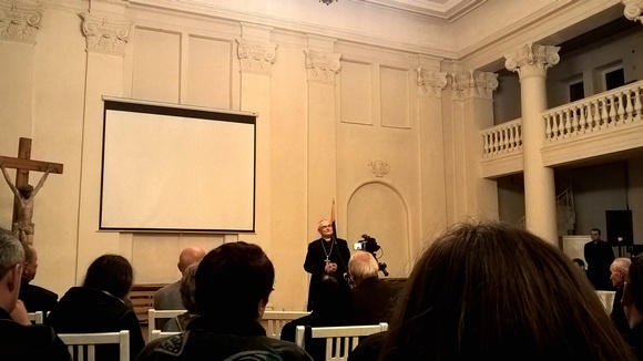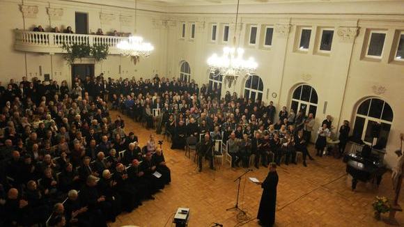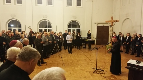 Po šv. Mišių paminėjimas tęsėsi pilnutėlėje arkivyskupijos salėje, o jį vedė tarnystės kelią dar neseniai pradėjęs kun. Vincentas Lizdenis.