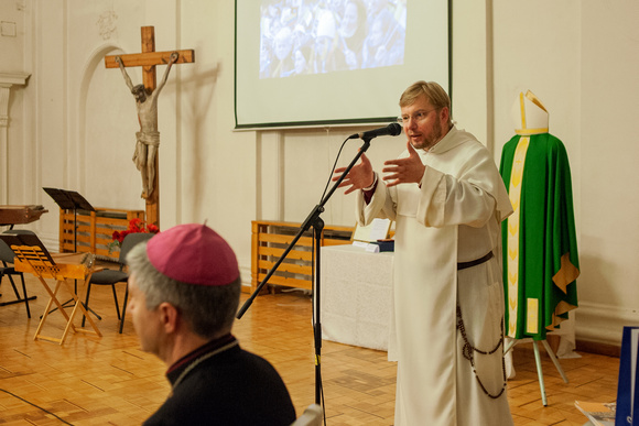 Homiliją pasakęs kun. Saulius Rumšas OP atkreipė dėmesį į vienybę, sutarimą, kurie per Jėzų Kristų, susitikimą su Juo, jau yra Dievo karalystės ženklai šioje žemėje. Tačiau čia, žemėje, ši karalystė vis dar yra paslėpta, neišsiskleidusi iki galo. Dievas kviečia būti Jo bendradarbiais, vienybės ir bendrystės bendrakūrėjais ir įgyvendintojais.