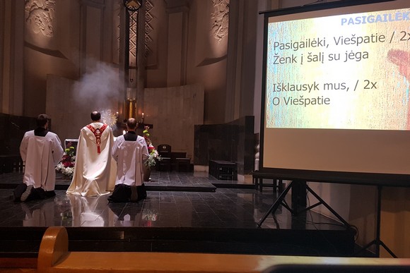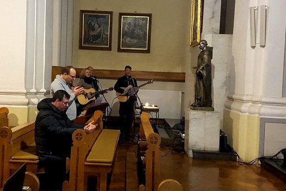 Tėvai misionieriai, jau pramokę lietuviškai, padėjo melstis susirinkusiems – jie vadovavo šlovinimui, kuris tą vakarą Viešpačiui skambėjo net trimis – lietuvių, anglų ir slovakų – kalbomis. Švenčiausiąjį Sakramentą adoracijai išstatė seminarijos rektorius kun. Ramūnas Norkus. Maldoje dalyvavo ir seminaristai.