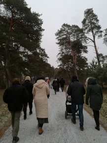 Po pietų savanoriai keliavo Kryžiaus keliu Veprių Kalvarijose. Nors dėl žvarbaus vėjo ir šalčio nepavyko aplankyti visų Kryžiaus kelio stočių, maldos bendrystę padėjo išgyventi kartu kalbamas Gailestingumo vainikėlis ir giesmės. Vėliau ši bendrystė tęsėsi su vaikais kuriant kalėdinius žibintus ir paveikslėlius. Vakare rekolekcijų dalyviai turėjo galimybę atlikti išpažintį, o pokalbis prie bendro stalo kartu su kunigu Valdu Šidlausku užsitęsė iki vėlumos.
