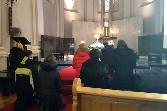 „Jėzus meldėsi už Jeruzalę verkdamas. Dėl jo ašarų daugelis Jeruzalėje atsivertė“, – atkreipė dėmesį t. Rastislavas, kviesdamas į maldą prie išstatyto Švenčiausiojo Sakramento, į šlovinimą drauge.