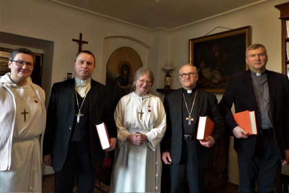 Po pamaldų Krokuvos arkivyskupijos kurijos koplyčioje vyskupai iš Lietuvos susitiko su spaudos atstovais ir davė interviu apie pal. Mykolo Giedraičio aktualumą šiandienos Bažnyčiai.