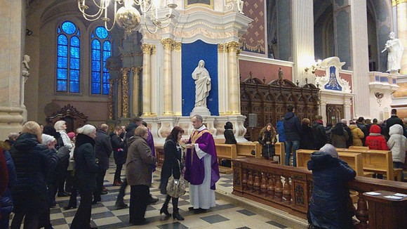 Po dienos darbų susirinkusieji į vakaro šv. Mišias Kauno arkikatedroje taip pat rikiavosi į gausias eiles priimti atgailos ir atsivertimo ženklo – pabarstymo pelenais, kuriuos liturgijoje pašventino su arkivyskupijos bendruomene pirmąją gavėnią pradedantis popiežiaus Pranciškaus apaštaliniu administratoriumi paskirtas vyskupas Algirdas Jurevičius.