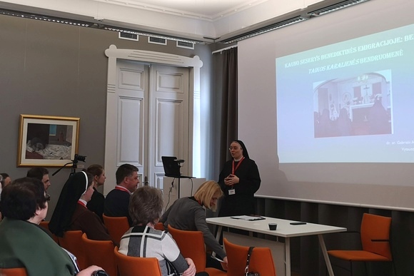 Ses. Gabrielė Aušra Vasiliauskaitė OSB pasidalijo Kauno seserų benediktinių istorija (įsikūrė Kaune, kai 1627 m. iš Nesvyžiaus atvyko penkios seserys), papasakodama ir apie jos atšaką emigracijoje, Bedfordo Taikos Karalienės bendruomenėje, susikūrusią dviem seserims dėl sovietų okupacijos pasitraukus iš Lietuvos. Tačiau jos gyvavimas jau yra nutrūkęs, vienuolyno namai Amerikoje uždaryti.