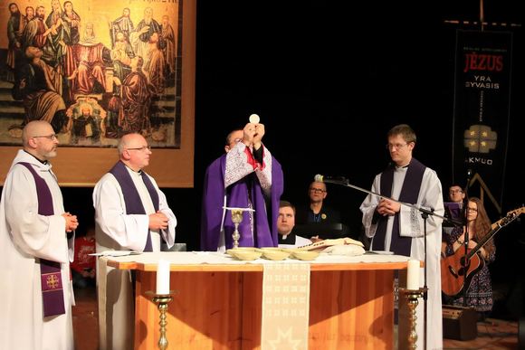 Prieš ganytojiškąjį palaiminimą vysk. A. Jurevičius dėkojo dalyviams, rengėjams, šlovintojams, kad iš Atsinaujinimo dienos žmonės gali išsinešti daugiau džiaugsmo, vilties ir tikėjimo ateitimi.