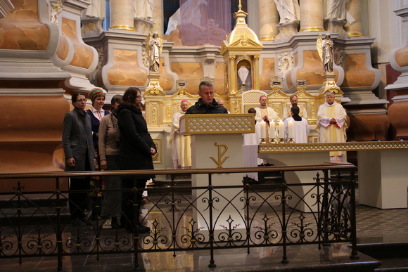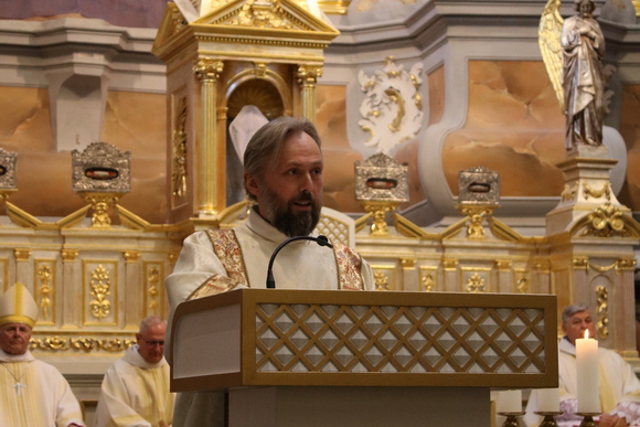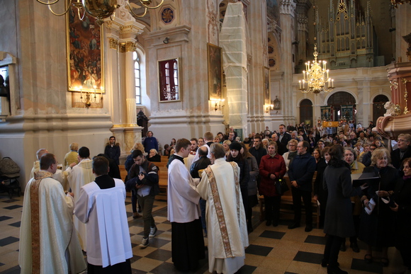 Evangeliją pagal Joną paskelbė ir homiliją pasakė nuolatinis diakonas Darius Chmieliauskas, atkreipęs dėmesį į diakoniškąją liturgiją šiose Mišiose. Jis pakvietė klausytojus įdėmiau pažvelgti, kuo gi šiandien Jėzus vėl nustebina. Paskutinė vakarienė – tai ne tik Taurė ir Duonos laužymas. Tai ir Kojų plovimo aktas, apie kurį iš keturių evangelistų kalba tik apaštalas Jonas.