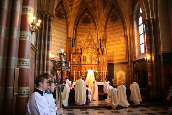 Mišių pabaigoje Švč. Sakramentas procesijoje buvo perneštas į Švč. Sakramento koplyčią. Nutilo vargonai ir giesmės, pamaldų dalyviai liko tylioje Viešpaties pagarbinimo maldoje.