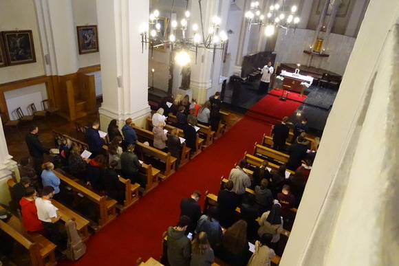Seminarijos bažnyčioje viso vakaro metu vyko Švč.. Sakramento adoracija, kiekvienas norintis galėjo užeiti tyliam sustojimui bei maldai.