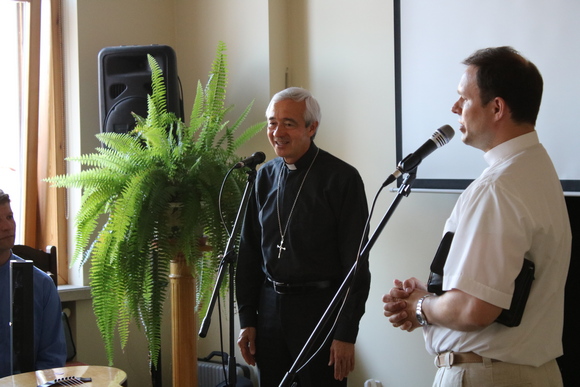 Malonus netikėtumas susitikimo dalyviams buvo sveikinimas popiežiaus Pranciškaus vardu, kurį perdavė Dvasininkijos kongregacijos sekretorius arkivyskupas Jorge Carlos Patrón Wong, tą dieną kaip tik viešėjęs Kaune ir susitikęs su Lietuvos vyskupais. Garbusis svečias perdavė sveikinimus nuo popiežiaus Pranciškaus, su džiaugsmu prisimenančio savo kelionę į Lietuvą, linkėjo būti Kristaus mokiniais ir mokytis iš Kristaus, taip pat paprašė melstis už savo vyskupus, kunigus, kad jie visada būtų tarnaujantys Dievo tautai.