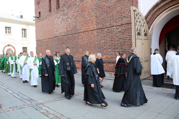 „Bažnyčios vardu džiaugsmingai sveikinu visus, kurie pradedate naujus mokslo metus. Nauja pradžia nerimastinga ir baugi, bet kartu viliojanti. Jos akivaizdoje trokštame, kad Dievas lydėtų savo palaima. Net jei ir kažko nepasiektumėte, nenusiminkite, bet turėkite vilties. Popiežius Pranciškus sakė, jog optimizmas nuvilia, bet viltis ne. Būkite optimistai ir vilties žmonės“, – rugsėjo 2-ąją iškilmingos Eucharistijos pradžioje sakė Kauno arkivyskupijos apaštalinis administratorius vyskupas Algirdas Jurevičius, sveikindamas Kauno akademinę bendruomenę – universitetų, kolegijų, taip pat ir Kauno kunigų seminarijos vadovus, dėstytojus, studentus, arkivyskupijos kvietimu susirinkusius arkikatedroje bazilikoje nuolankiai prašyti ir priimti Dievo pagalbą savo darbams ir studijoms.
