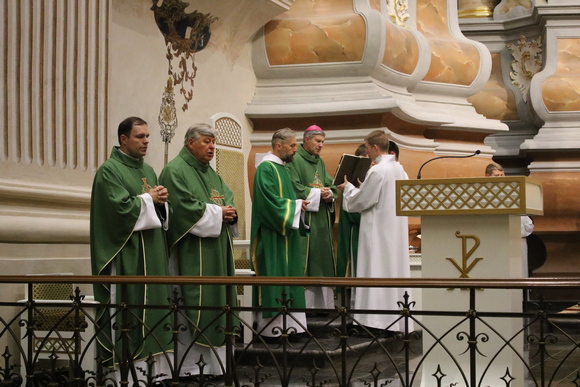 Šv. Mišias koncelebravo prel. Vytautas Steponas Vaičiūnas OFS, Kauno kunigų seminarijos rektorius kun. Ramūnas Norkus, „Marijos radijo“ programų direktorius kun. Saulius Bužauskas, tėvai redemptoristai Rastislavas Dluhý bei Peteris Hertelis. Patarnavo diakonai Darius Chmieliauskas bei Marius Boreiša. Giedojo jungtinis seserų vienuolių choras.
