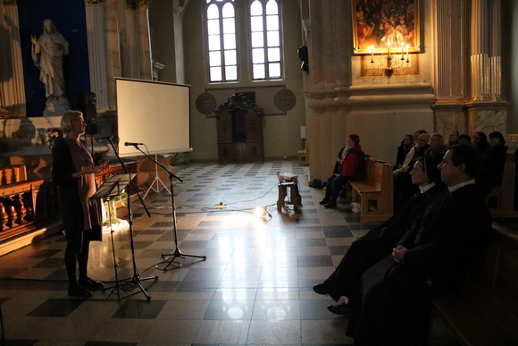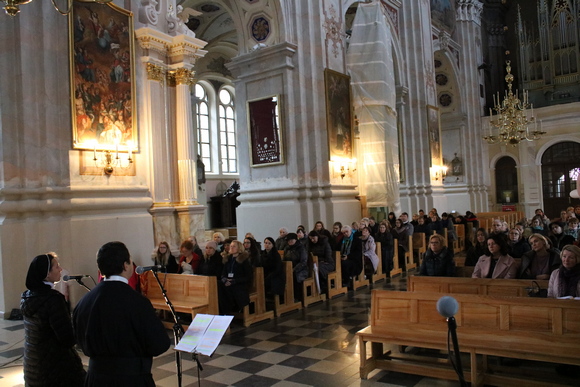 „Jei taip atsitiktų, kad mus teistų dėl tikėjimo, ar rastų pakankamai įkalčių (gyvenime), kad esu katalikas?“ – sakė Vaida Spangelevičiūtė-Kneižienė, primindama mintį iš Misijų Mišių homilijų ir kviesdama atverti širdis šlovinimui ir toms tarnystėms, kurioms Dievas mus pašaukia.